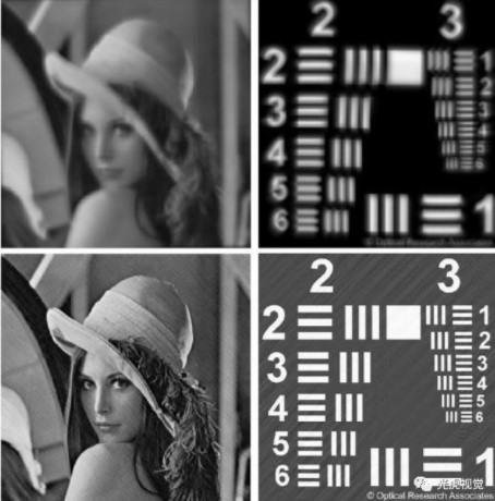 單透鏡光學(xué)系統(tǒng)難以校正系統(tǒng)像差,成像質(zhì)量差,難以滿足需求。通過獲取全視場(chǎng)的點(diǎn)擴(kuò)散函數(shù),利用反卷積算法,實(shí)現(xiàn)單透鏡成像光學(xué)系統(tǒng)圖像的恢復(fù),如下圖二所示: