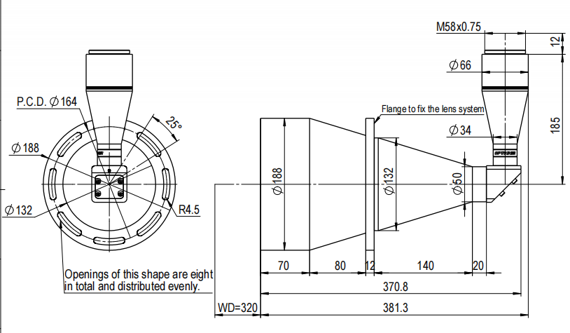 TTL39.2系列標準雙遠心鏡頭標準F接口或M58接口,最大兼容39.2mm(對角線39.2mm)靶面工業相機。